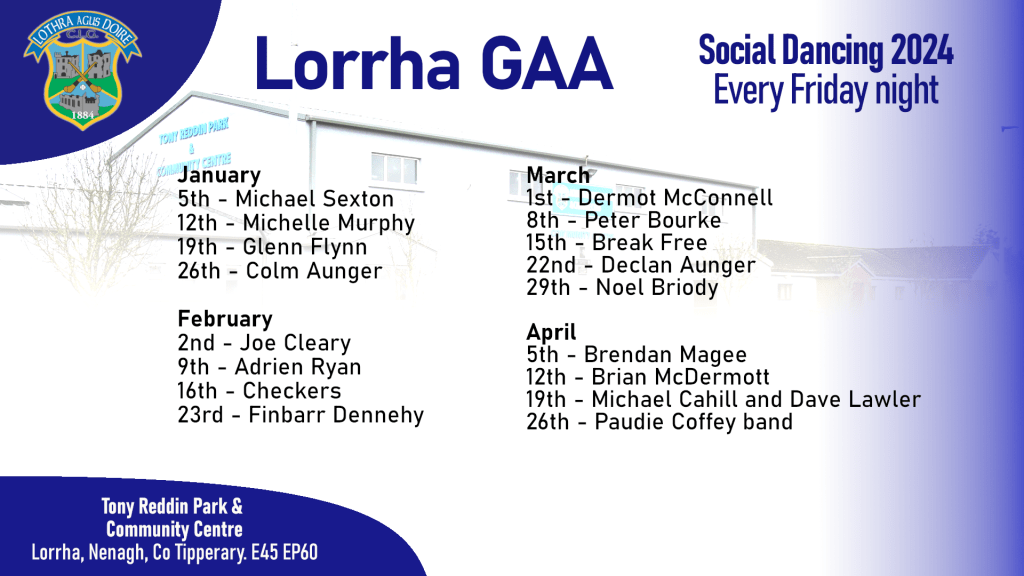 Social Dancing: Continues in the Tony Reddin Centre next Friday night from 9.30pm to the music of Joe Cleary.